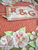 J’ai découpées, assemblées les fleurs et j’ai ajouté un miroitement au cœur des fleurs avec les "essentiels effets laque nacrée".